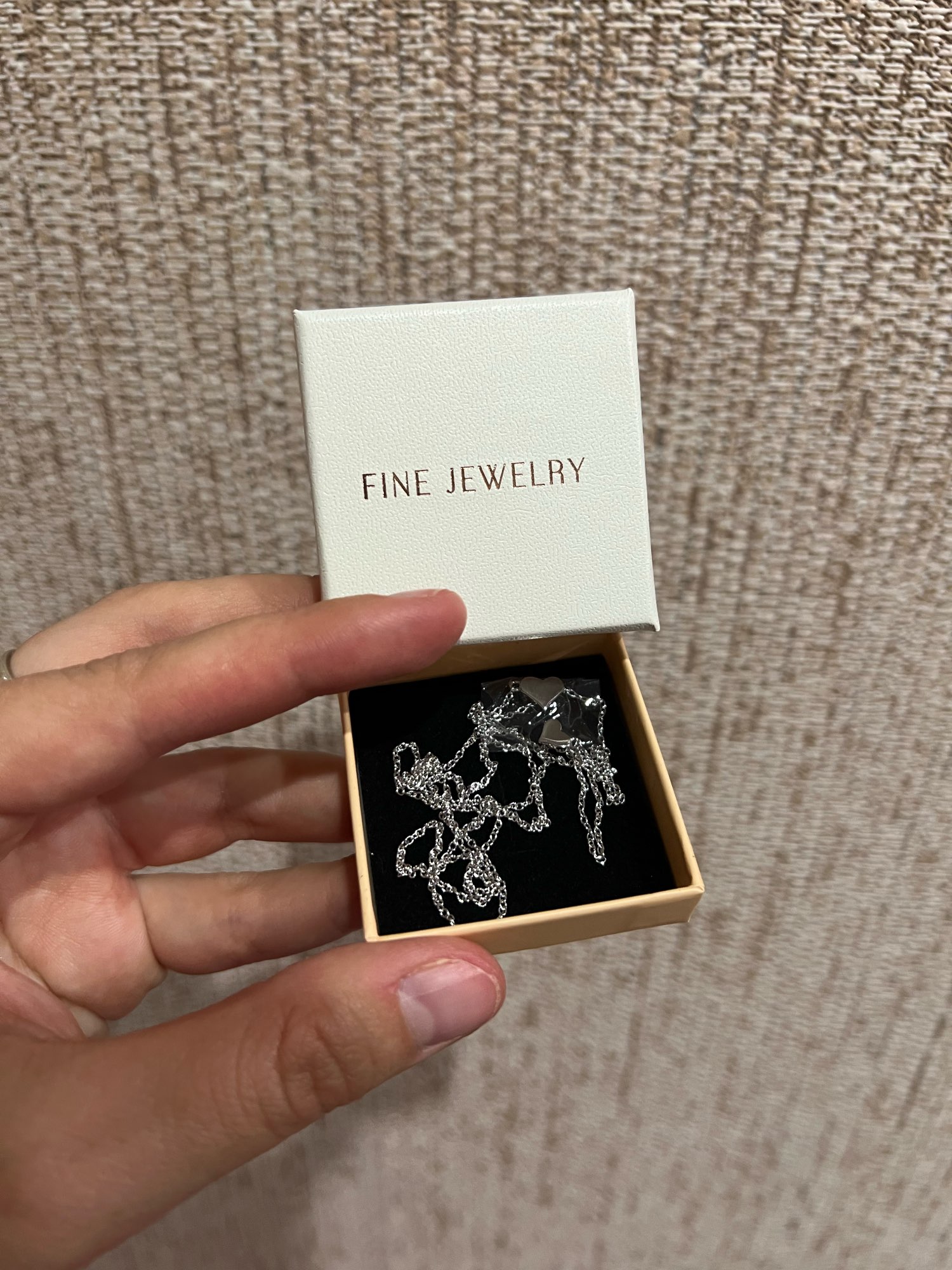 It came in such a box. Nice. Can be used as a gift. It looks like silver. Fast delivery. I recommend this store and product!