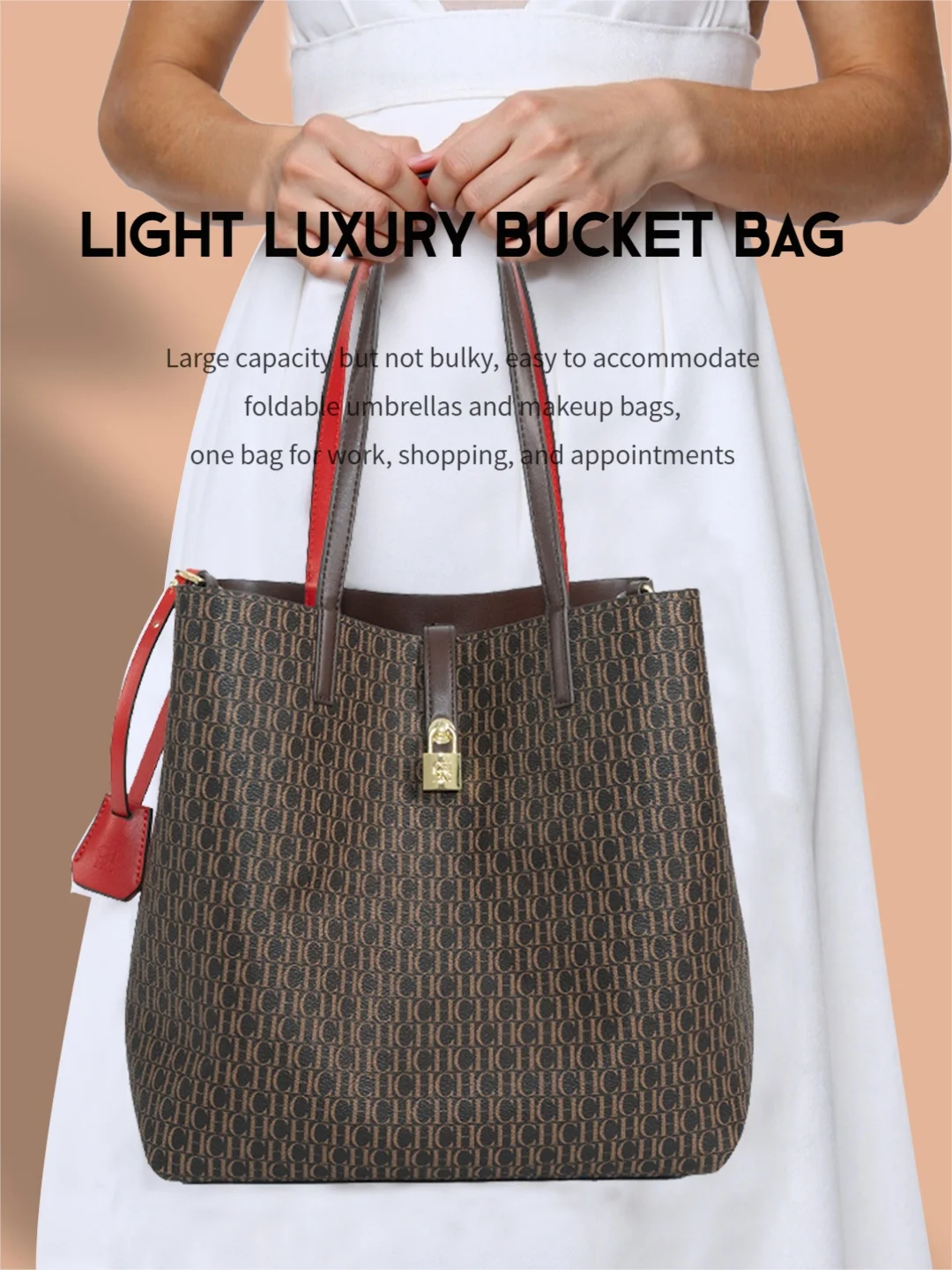 CH Premium Versatile Leather Crossbody Bag Ladies Large Capacity Daily Commuter Tote Bag Letter Print Design Ladies Fashion
