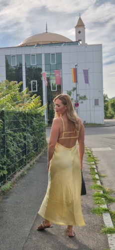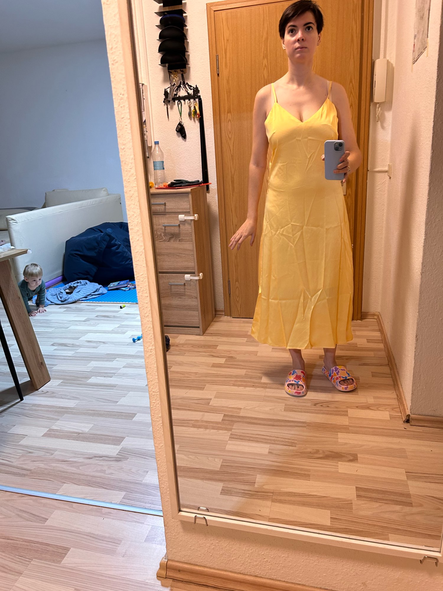 Very pretty dress but take a size up because otherwise it's tight at the hips.