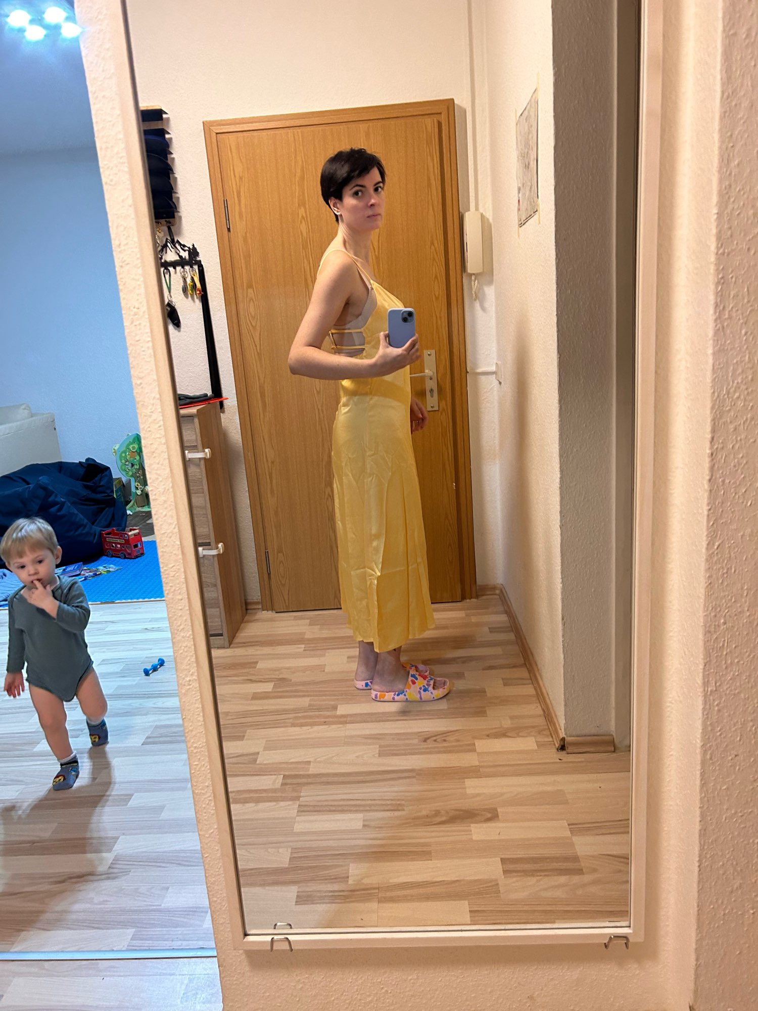 I'm disappointed. The dress is cool, it fits well at the hips, but there's still room for half a waist in it. It will probably need to be sewn up.