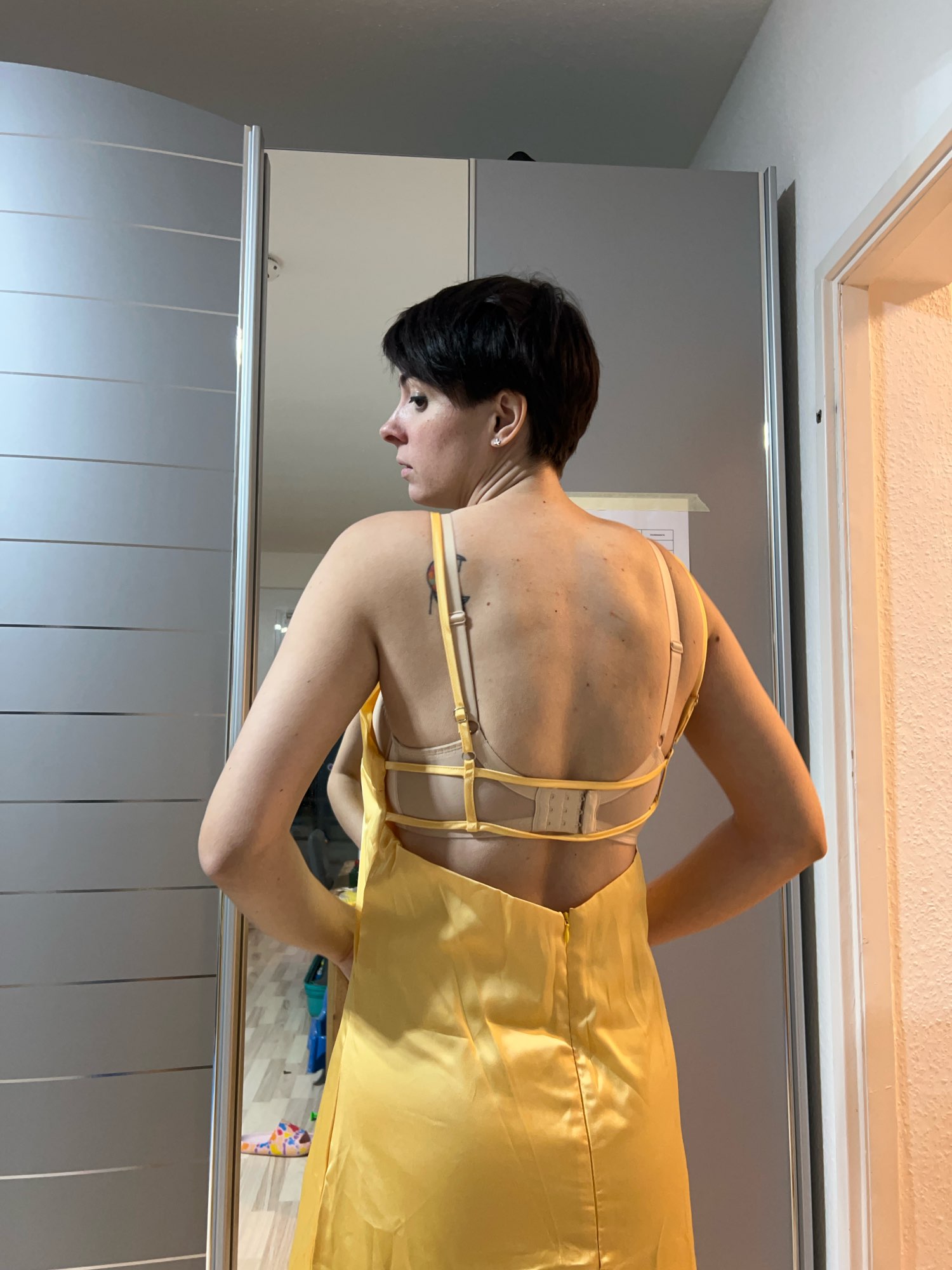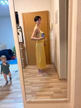 Dress is absolutely stunning only bad thing about this dress is zipper part. It looks loose and bumpy. I will exchange it for smaller size to fix the issue