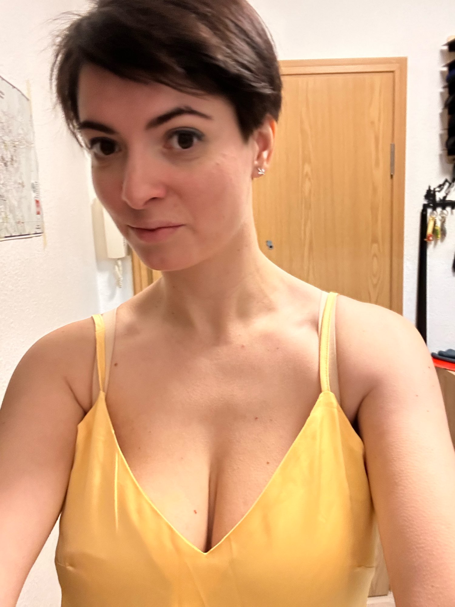 I opened it and liked everything, just like in the photo. It's not a duck yellow. It's a normal yellow. The size is fine, but a little loose at the waist, I have 4 cm left over.