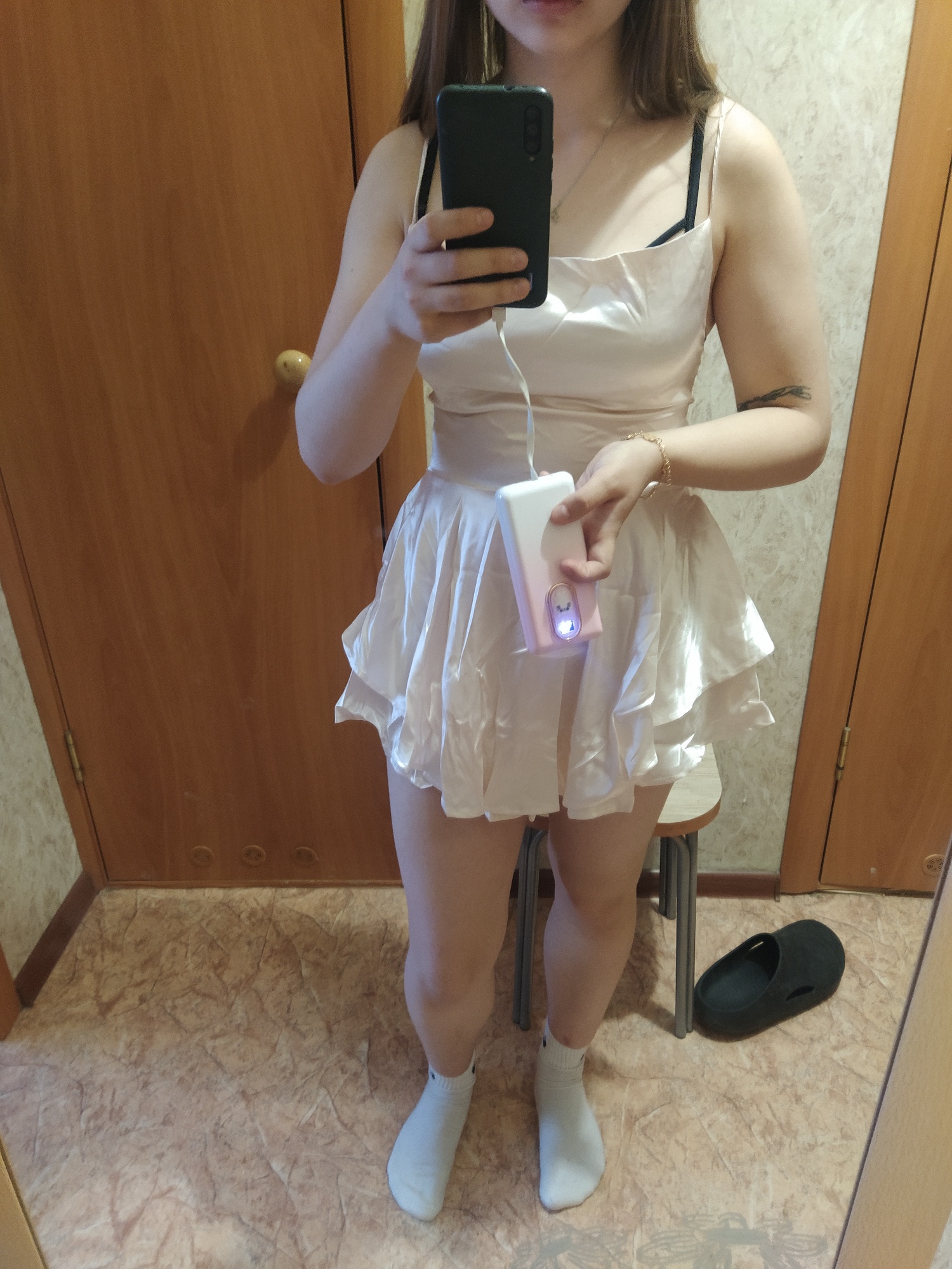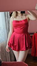 Just picked it up, immediately tried it on without ironing, ordered another Ukrainian-made one. I can say that this is sewn much better, the color is more burgundy and pinkish, great for girls with a cool undertone. Very satisfied with this dress, it fits like in the pictures, true to size. 🍑 Damn, how it poured. Arrived quickly